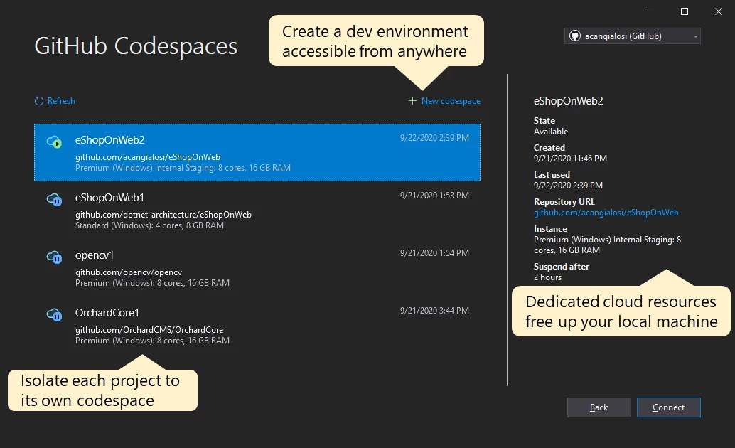 GitHub Codespaces integration with Visual Studio