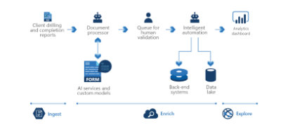 Durch die Orchestrierung verschiedener KI-Funktionen bietet die Wissensgewinnung eine erweiterte Funktionalität, mit der Unternehmen schneller Erkenntnisse aus Inhalten gewinnen können, die andernfalls ungenutzt bleiben. Die Wissensgewinnung umfasst drei Phasen: Erfassung, Anreicherung und Untersuchung.