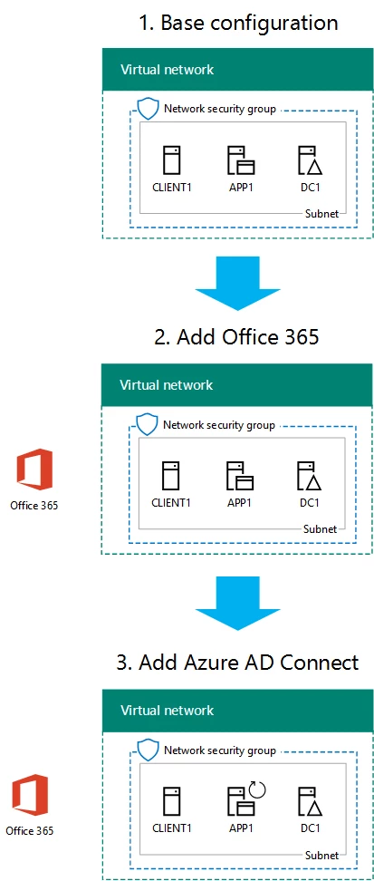 - Configure and test directory synchronization between the Windows Server AD forest of your simulated intranet and the Office 365 subscription.