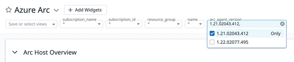 Datadog can also show which hosts are running an older version of Azure Arc. It then becomes easy to update the agent using Azure Update Management and utilize Azure Automation for latest updates to the Azure Arc agent whenever there is a new version.
