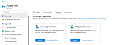 - Azure Arc 対応 SQL Managed Instance または PostgreSQL (プレビュー中) をあらゆる Kubernetes ディストリビューションとあらゆるクラウドでデプロイできます。
